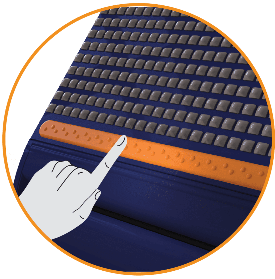 User can restart/ cancel the complete formation of pixels using intuitive button in orange. The surface is embossed with braille like dots to create recognised texture.