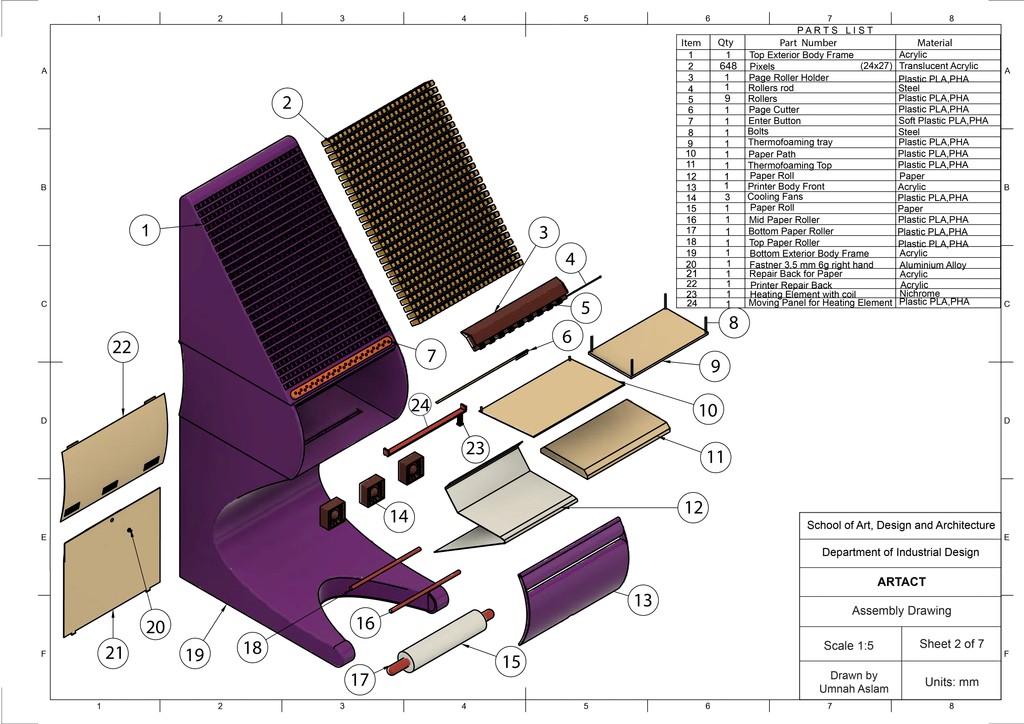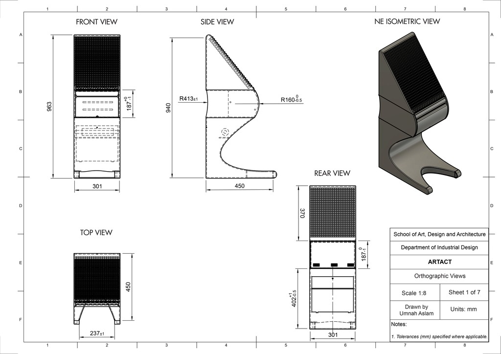 Ideas were taken from paper to form which led to Artact 1.0 that was designed to be an embossed drawing pad for visually impaired children to share ideas and introduce a tool for the users in order to communicate through visuals.