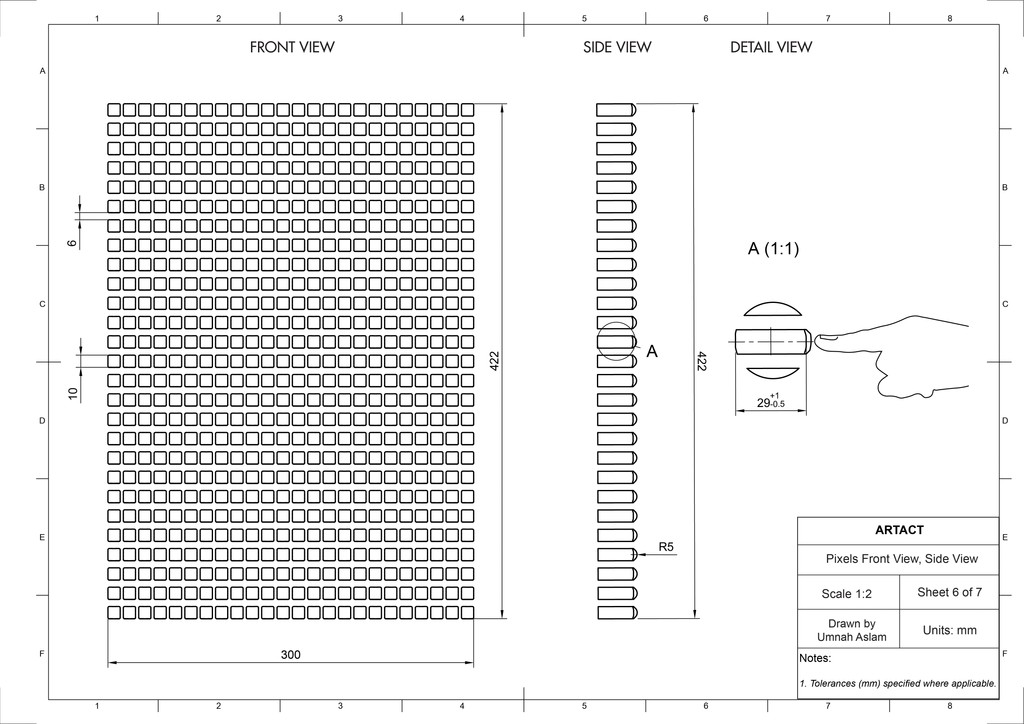Double touching a pixel deactivates it, back to its former position with light turned off. Final artwork is prepared using the tactile pixels.