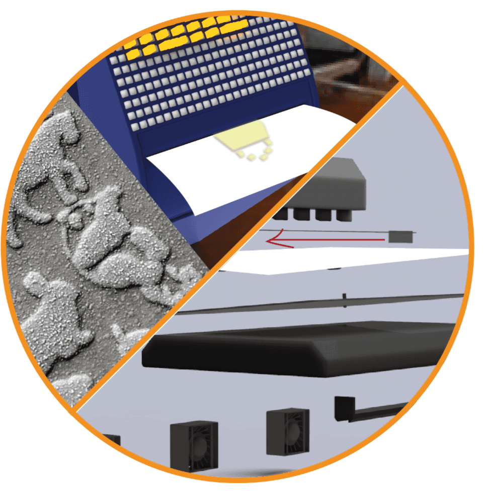 Thermal technology read data from micro controller and processes it in form of heat transferred using heating element onto foaming paper. This foams the area heat is applied to.