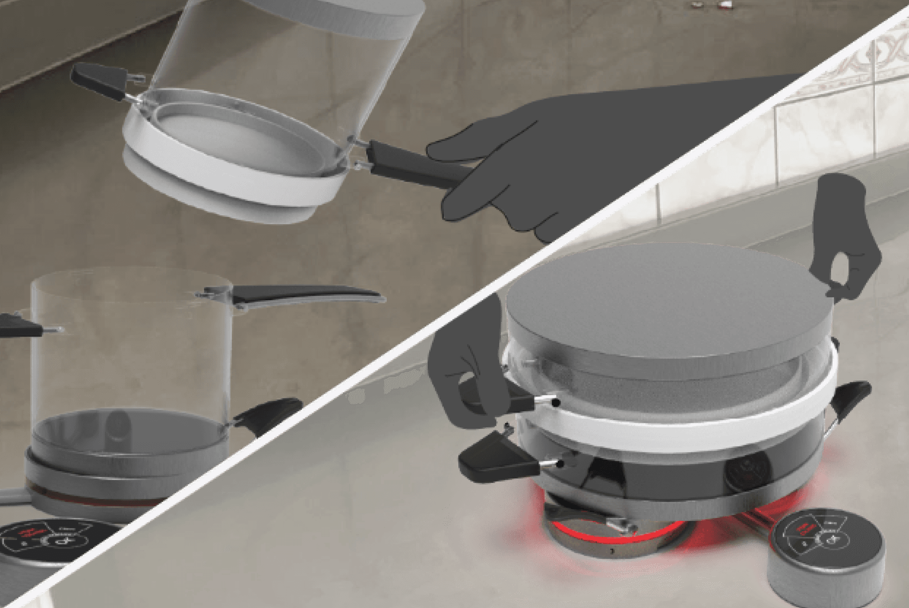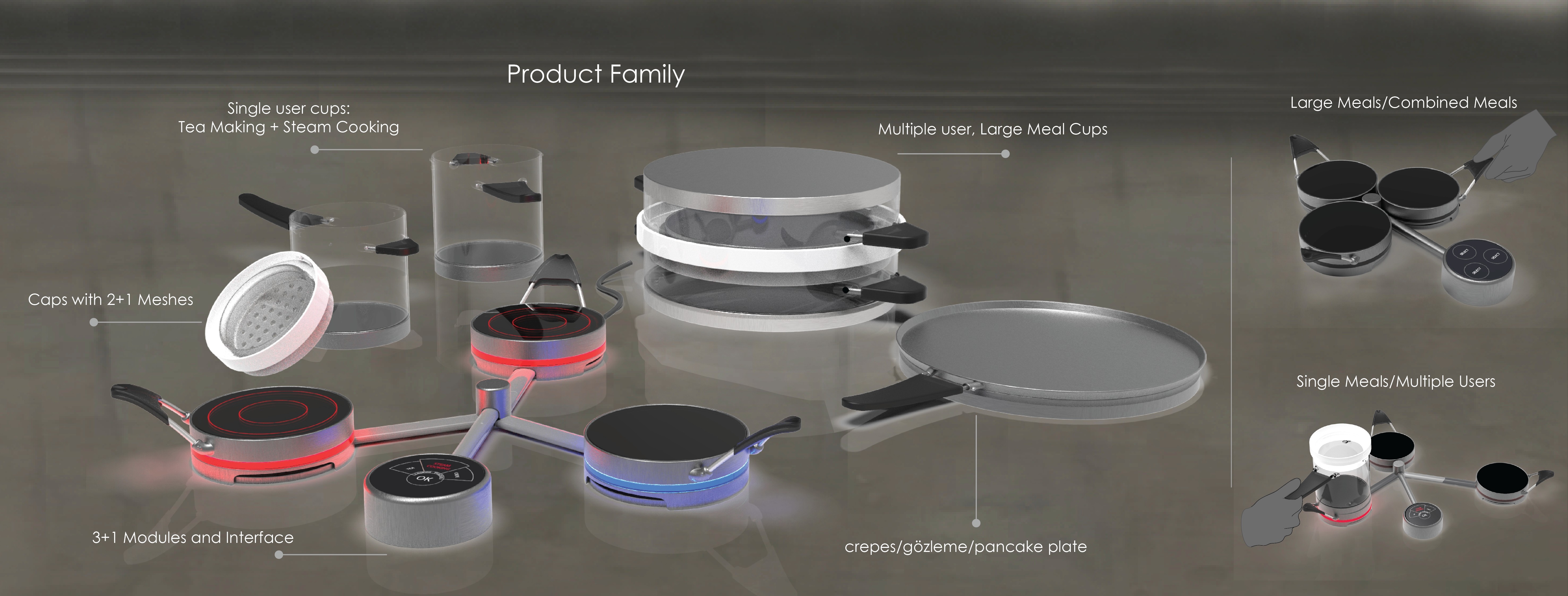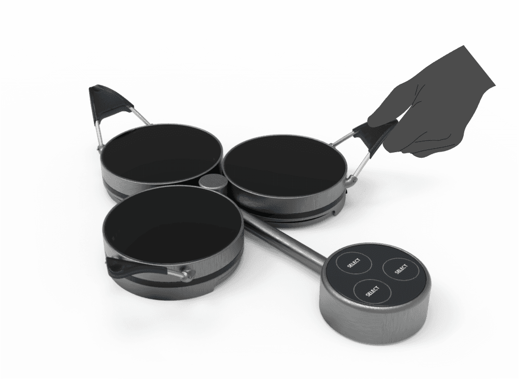 Pancakes, crepes, gözleme can be made by combining the three modules and using the widest cooking cup. Silicon handles provide for easy grip and safety.