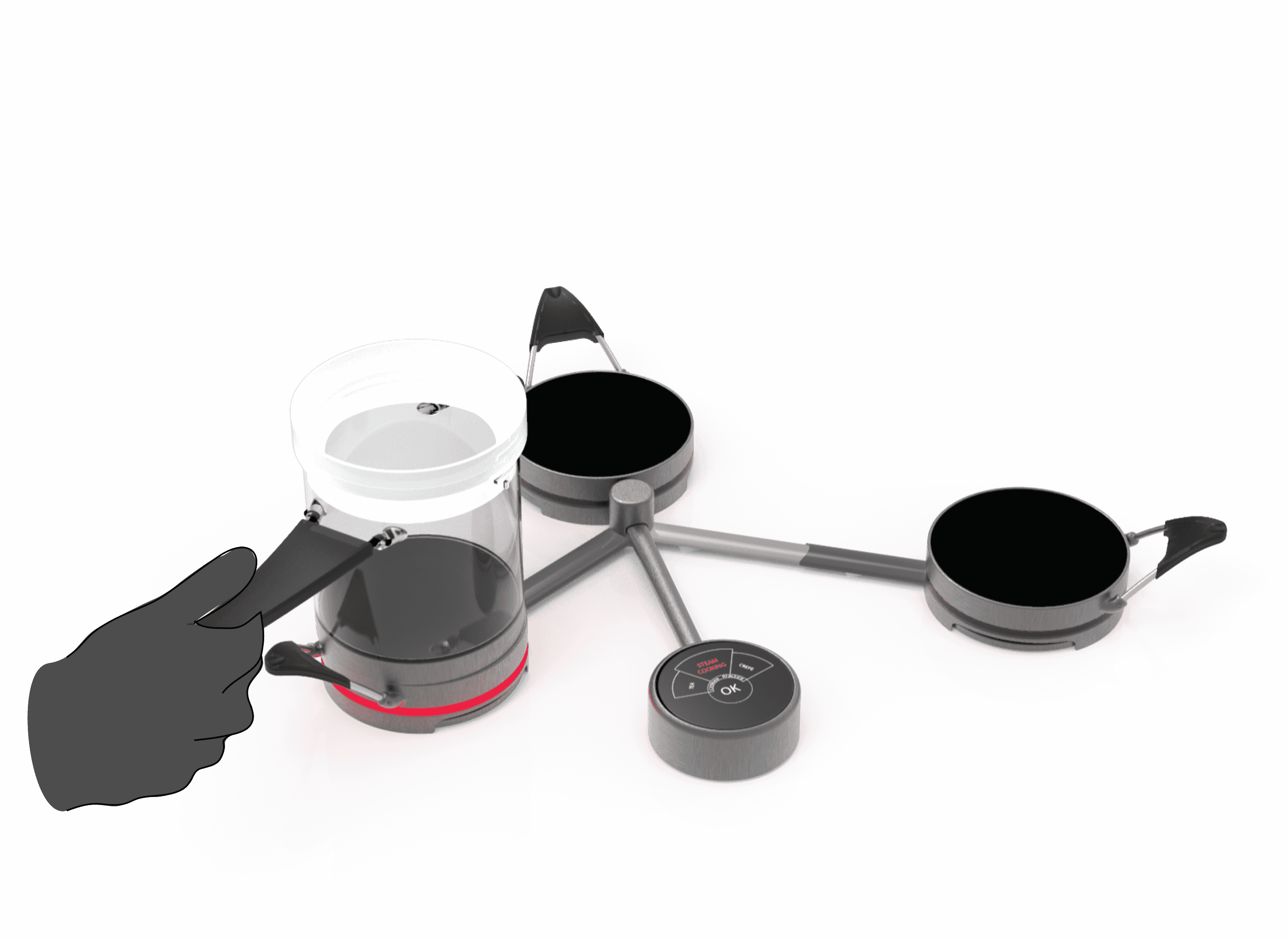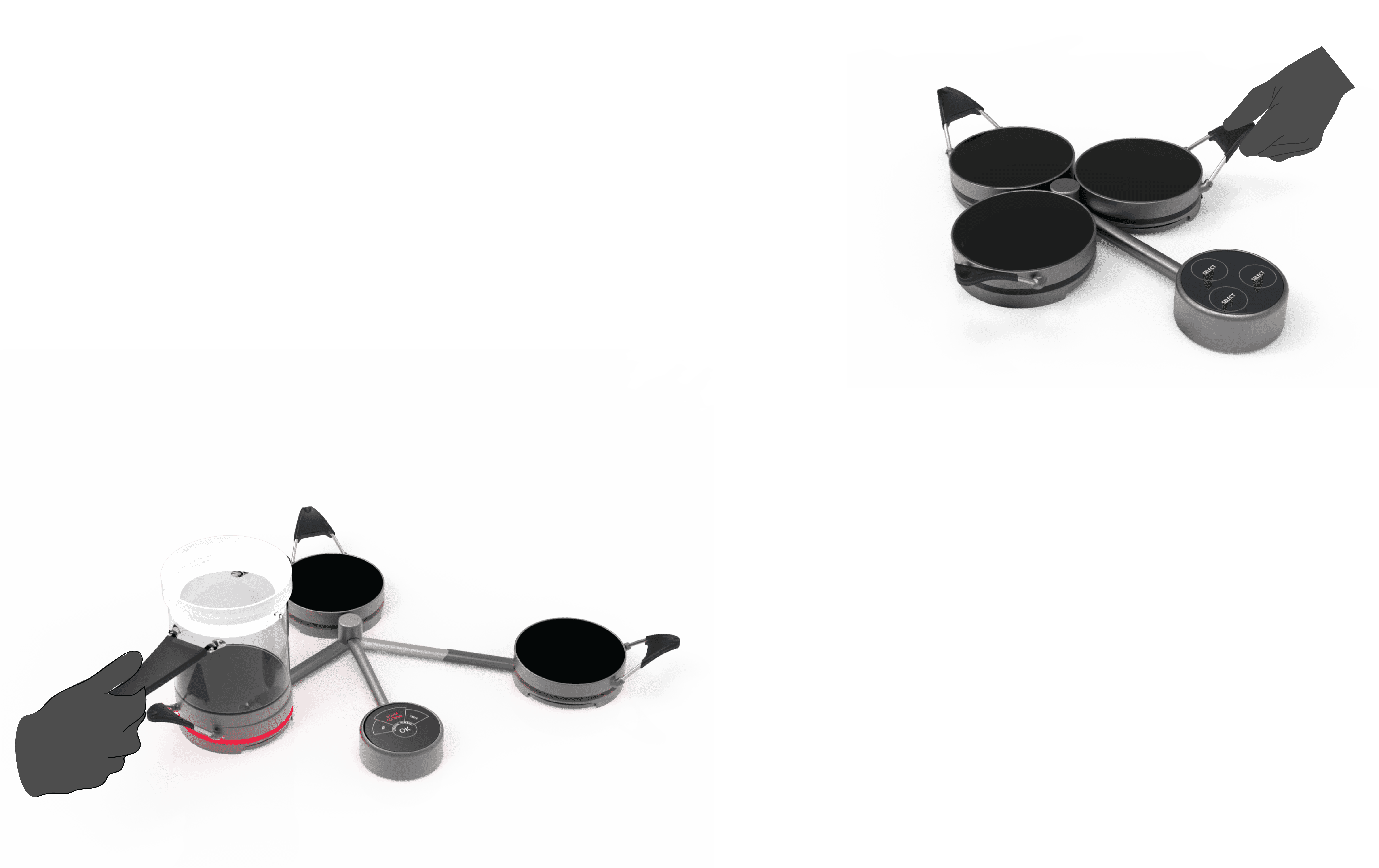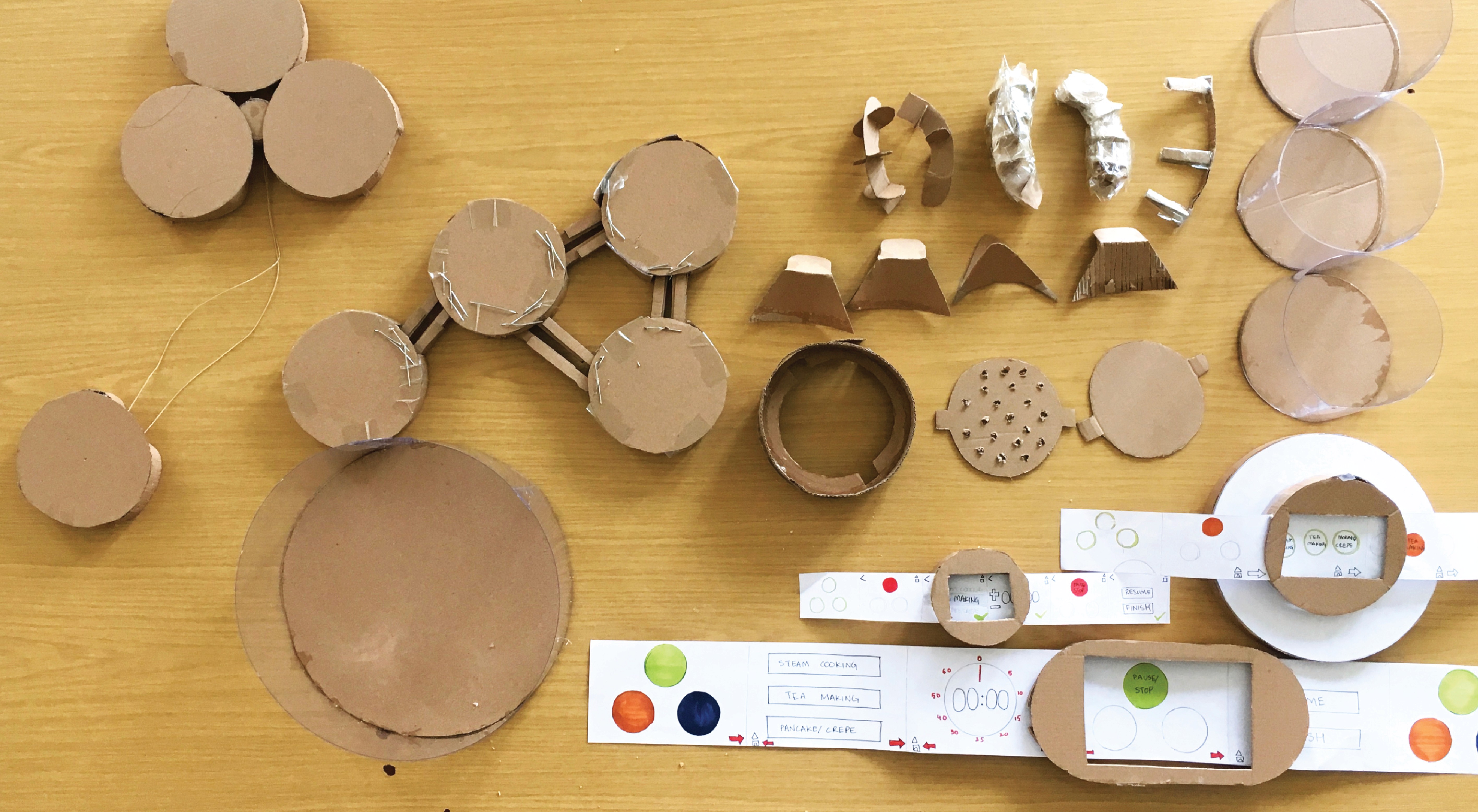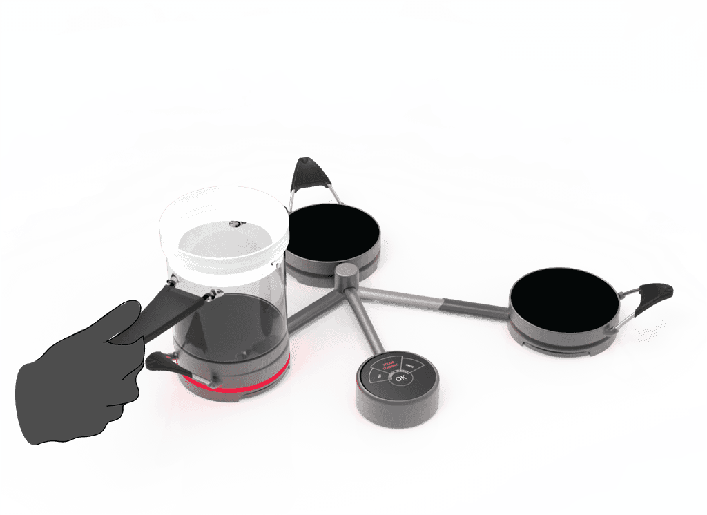 Design iterations based on user testing feedbacks, from cardboard prototypes, depending on success of different product features and functionality. We tested various versions of design forms for handles, pots, base, filters and user interface.