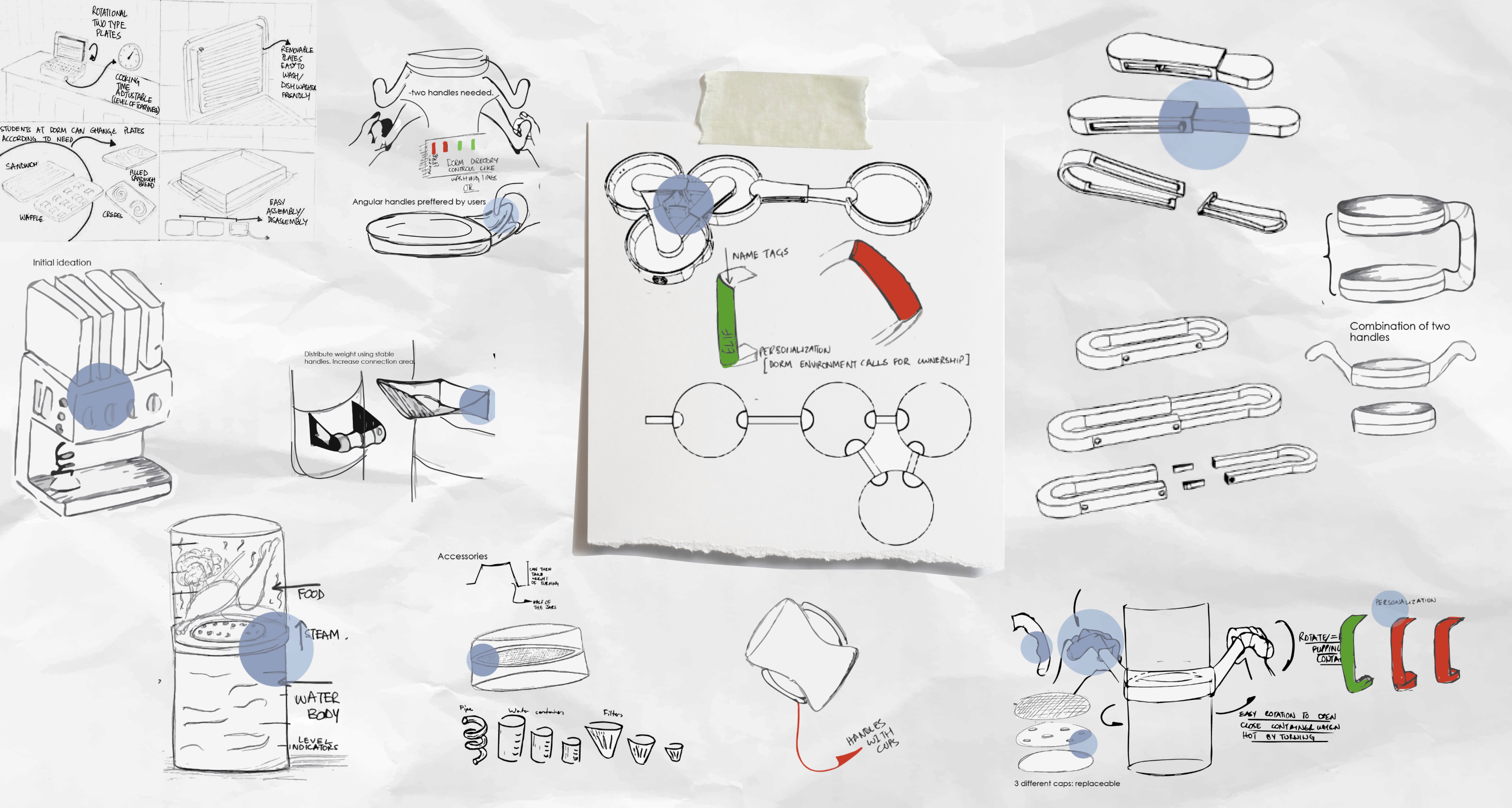 We started off sketching scenarios wise e.g. breakfast at dorm with 3 users and this way through contextualising the product we were able to ideate the design, functionality and design details as well.