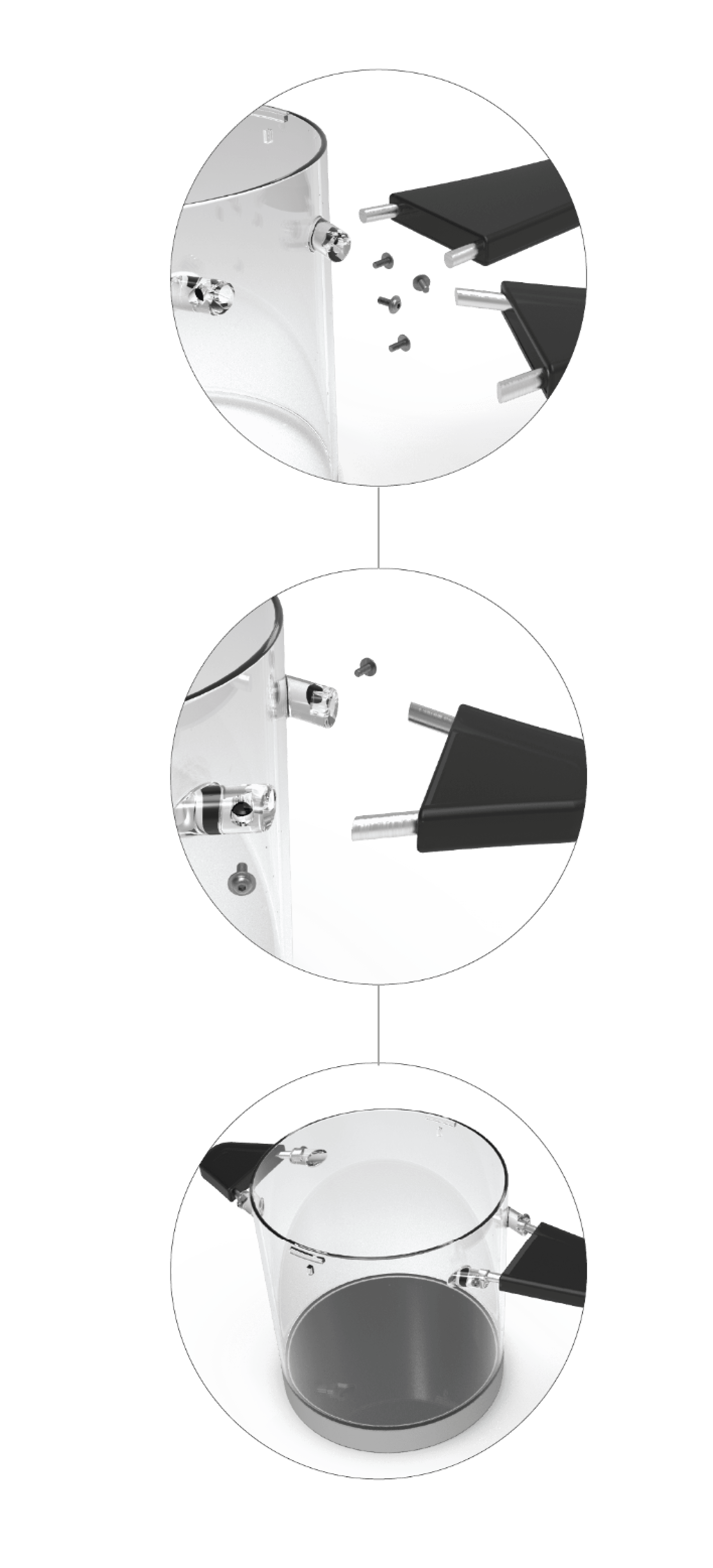 Handles are screwed upon first time use, according to need 1/2 handles are fixed. Silicon grips allow user safety while handling cups