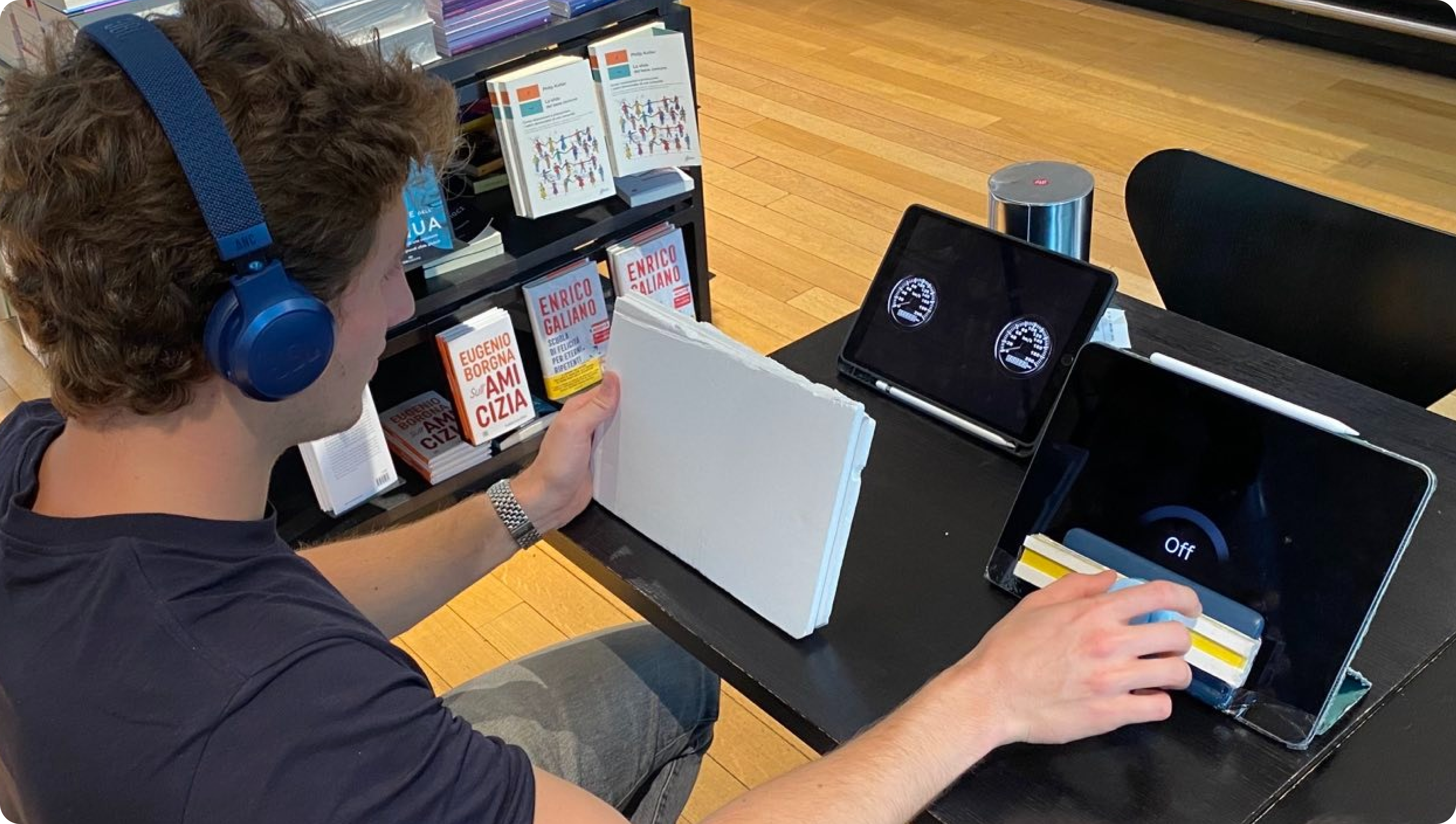 To achieve the prototype, the team chose Protopie as a bridge to connect physical part (knob system) and digital part (screen system). For the screen system, three devices are prototyped as displays in car. For the knob system, different electronic components are programmed accordingly to the functions and interactions of the system using arduino, slide potentiometer, sharp sensor, vibration motor and ipad/iphone screens as displays.