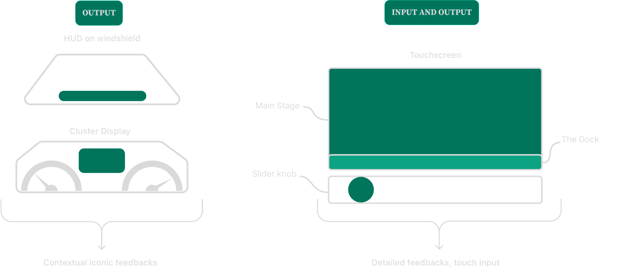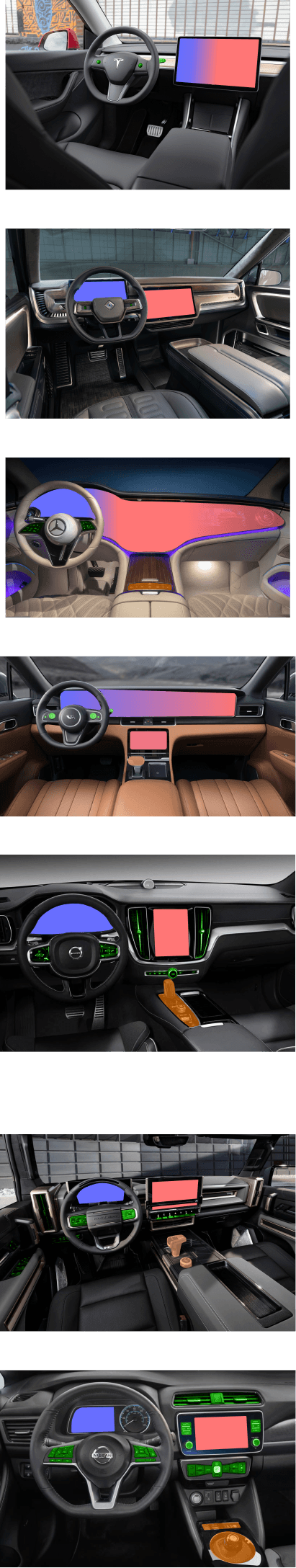 Understanding current market trends and user needs and pains the goal at this stage was to find the perfect balance with our solution. Therefore, we started by analysing various existing infotainment systems and the placement of controls in current car designs.